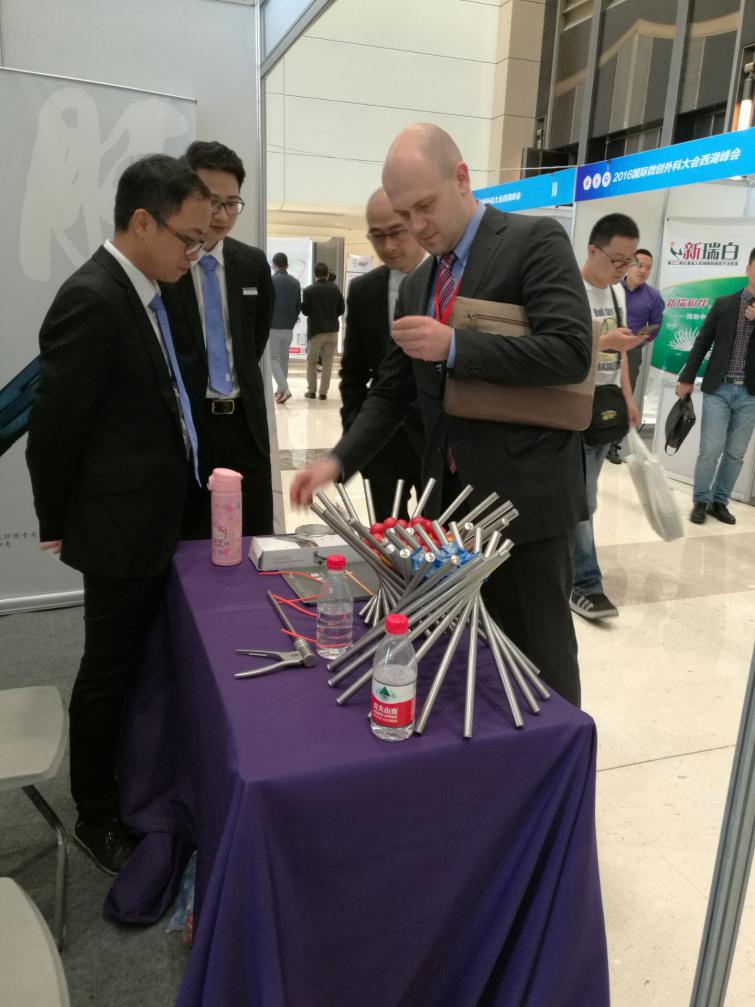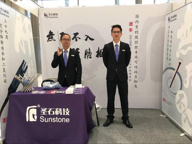 會議茶歇期間,我公司展位吸引了眾多專家醫師們的關注,其中有來自英國皇家英格蘭外科學院的專家代表前來了解我公司產品---速豐?可吸收止血結扎夾,現場我司工作人員欣然以嫻熟的英語為其做介紹與產品演示,我公司產品的特點及優勢得到了英國皇家英格蘭外科學院專家的認可與肯定!